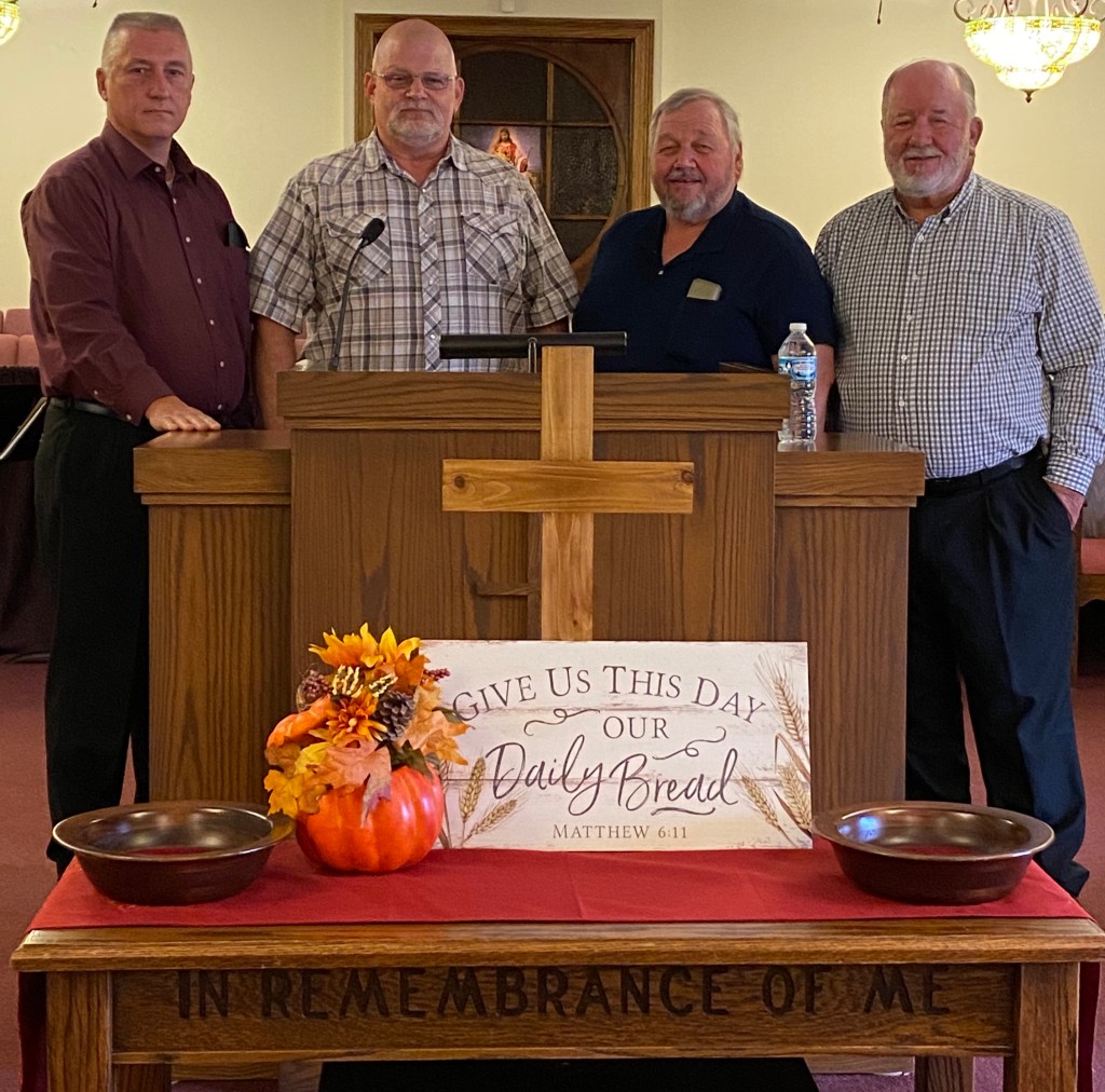 These 4 men are the deacons of Community Bible Church. They serve our church in leading services, working, and visiting. In addition to their deacon work, they are also busy in other roles. Scott Carr teaches Sunday School and preaches. Mark Rucker sings in the choir and sings during services with his wife, Lori. Eddie Yonce plays bass, drums, and sings. And Chester Kouns teaches Sunday School, preaches, plays bass, and sings.